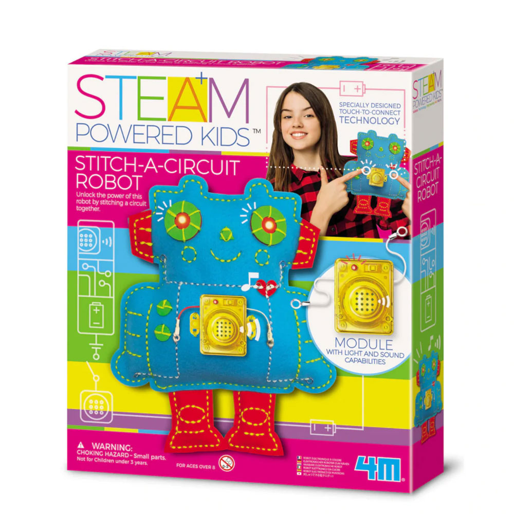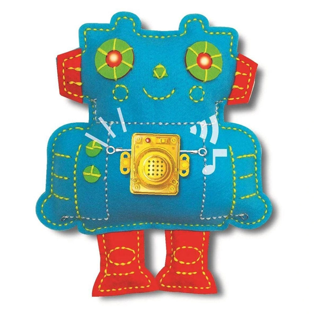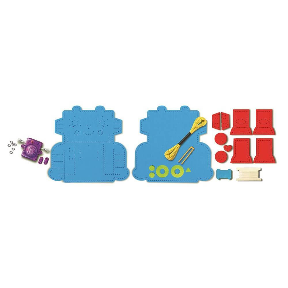 ערכת יצירה חכמה שמשלבת תפירה, אלקטרוניקה ודמיון. הילדים תופרים בעצמם רובוט רך וצבעוני, ומגלים איך מעגל חשמלי נוצר דרך חיבור חוטים ורכיבים בצורה פשוטה ומוחשית.