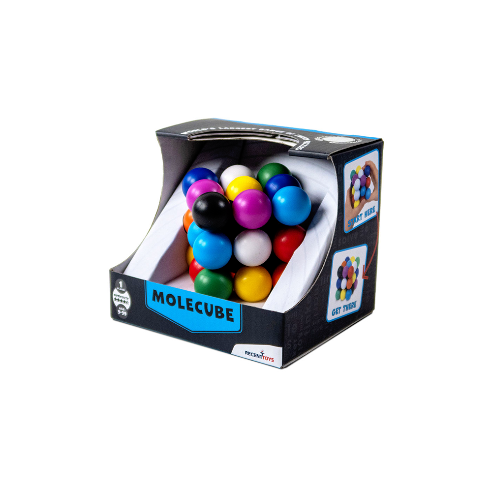 אם אתם פאזליסטים ברמה מולקולרית – המולקיוב (Molecube) מחכה לכם! קובייה מסתובבת וחלקה עם מנגנון קליק מספק במיוחד, שתיהנו ממנו בכל סיבוב. האתגר: לסדר 9 צבעים שונים בכל צד – טוויסט צבעוני ומאתגר במיוחד על הקובייה הקלאסית. סובבו. הקליקו. פתרו.